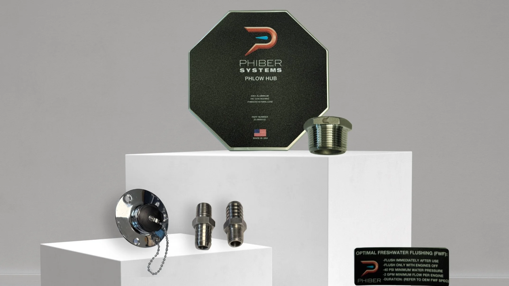 The PHIBER PHLOW Hub is a multi-faceted instrument engineered to maximize the efficiency of any freshwater flush. The design streamlines installation and enables superior PHIBER flushing for ALL PHIBER Systems, whether manual (dock hose connection) or at the “touch of a button” using a FWF Pump.
